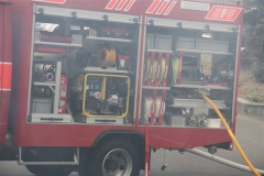 | Besonderes: | Elektrische Ausrüstung 3 blaue Rundumkennleuchten mit Cis-Gis-Kompressorhorn. LED Frontblitzleuchten im Kühlergitter. Gelbe Warnblinkleuchten vorne und hinten. Pneumatisch ausfahrbarer Lichtmast Typ Fireco, Höhe ab Boden ca. 6m. Mit 2 Halogen-Flutlichtscheinwerfern 1000 W / 230 V, Speisung ab Notstromaggregat. Elektrische Schwenkvorrichtung für Scheinwerfer, manuelle Drehvorrichtung. Notstromaggregat Eisemann HKA 5 DIN, Nennspannung 230/400V, Leistung 4100/5000 VA. Gewicht 99 kg. | ||
