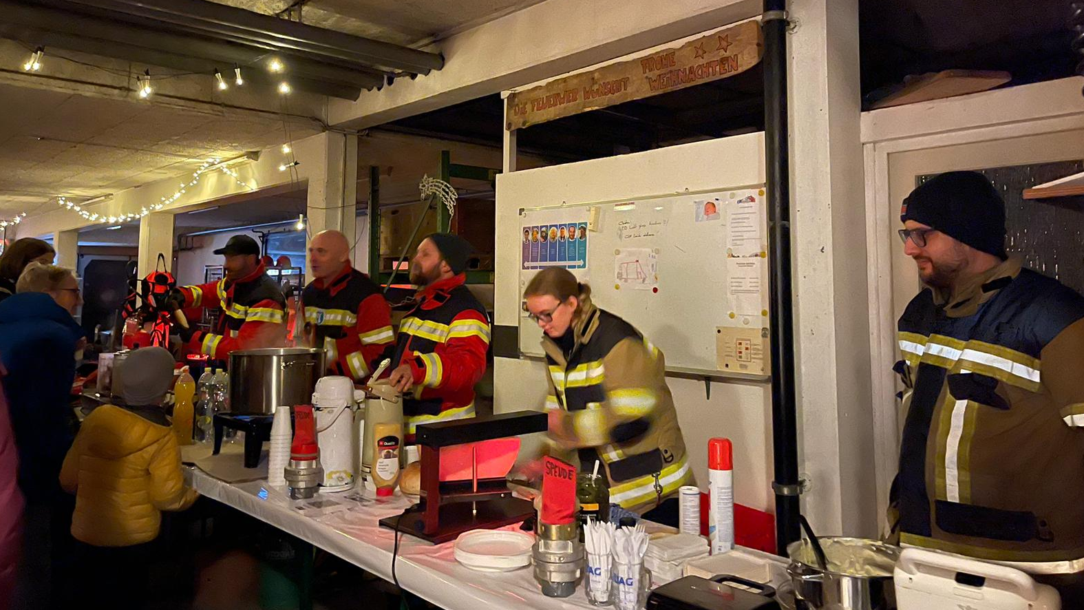 Raclette, Würste, Hotdog, Waffeln, Glühwein, Bier, Mineral und einen Friteusenbrand zum Selberlöschen.