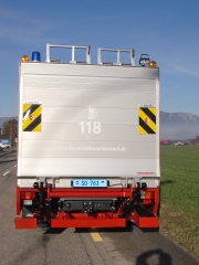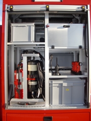 | Auf- und Ausbau des Fahrzeuges: | Löschaufbau-Gerippe aus anodisierten Aluminium-Spezialprofilen | ||