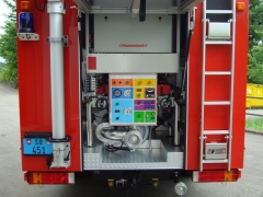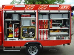 | Auf- und Ausbau des Fahrzeuges: | Löschaufbau-Gerippe aus anodisierten Aluminium Spezialprofilen | ||
